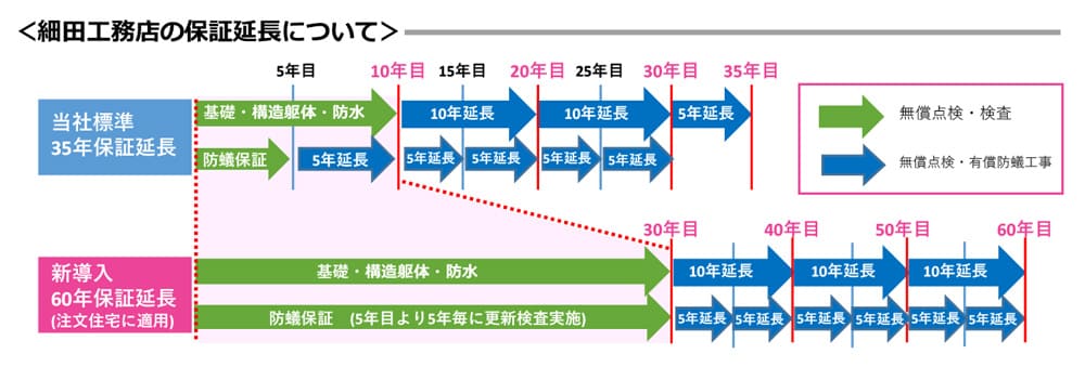 さらに、この30年保証を60年まで延長することができる「新・保証延長システム」をリリース。更なる安心をお届けします!